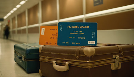 Baggage and boarding pass in the airport. Travel concept.