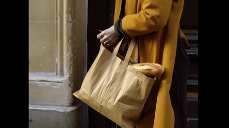 Parisien Baguette Bread in biodegradable paper bag. Ai generative