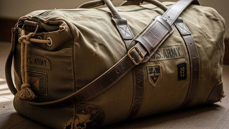 Travel bag on a wooden floor, closeup of photo.