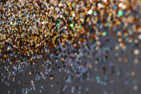 Macro view of colorful glitter, abstract defocused background.