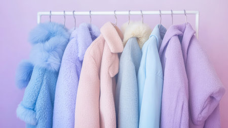 Boutique clothing rack featuring a variety of fashionable and stylish outerwear in warm tones. concept of fashion retail, style selection, clothing display.