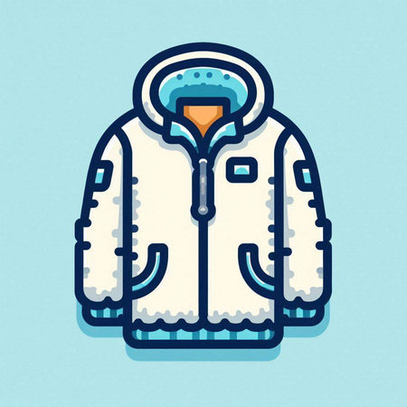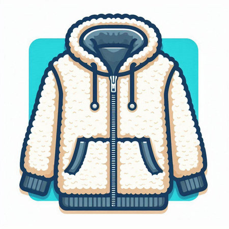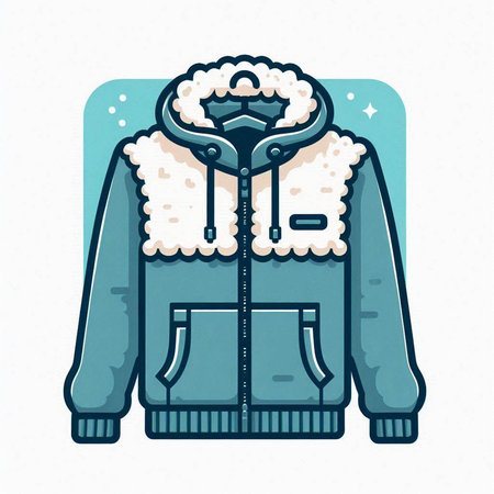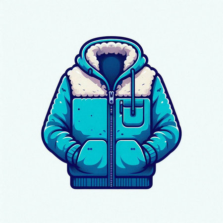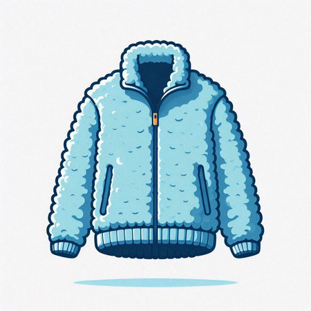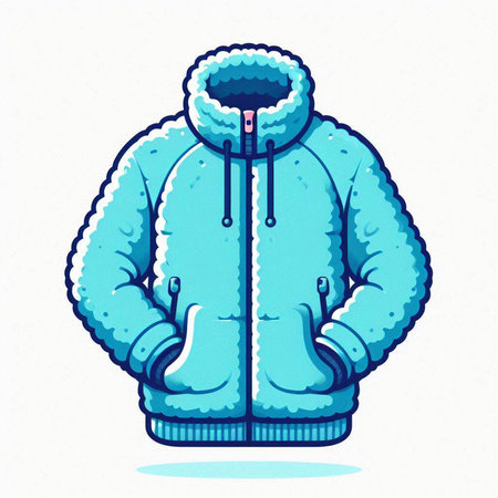 Blue winter jacket isolated on white background. Vector illustration in hand drawn style.