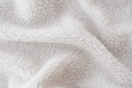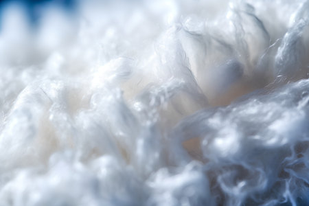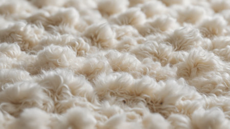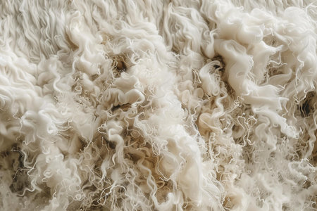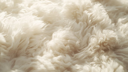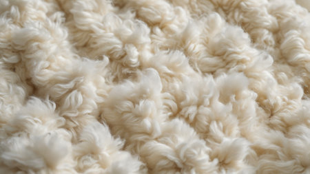 A close-up view of soft, fluffy white wool, showcasing the intricate texture and natural warmth. Ideal for backgrounds or cozy design elements.