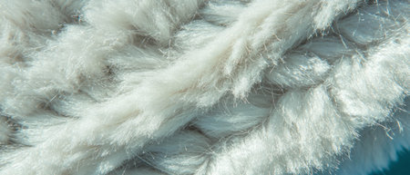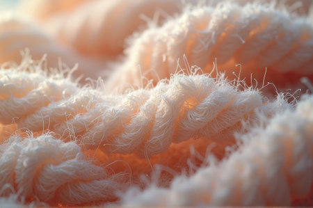 Close-up of twisted white yarn fibers in soft natural light. That the image is generated using AI.