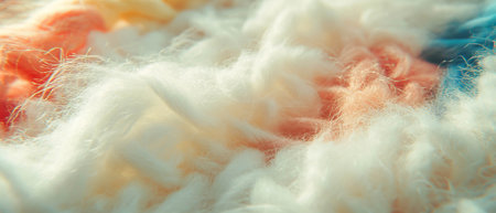 Delicate, fluffy white fibers intertwine to form a soft, inviting texture, reminiscent of cozy wool blankets, creating a warm and comforting atmosphere.