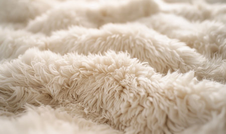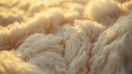 An intricate close-up of soft, fluffy curls in a warm cream hue creates a cozy and inviting atmosphere. The texture invites touch, evoking feelings of comfort and warmth, perfect for home decor or fashion.