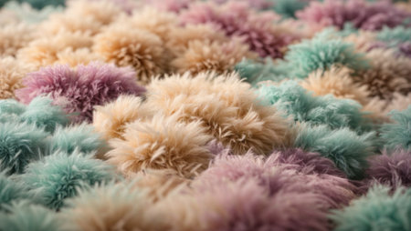 Close-up of multicolored textile fibers displaying textile texture and vivid colors. That the image is generated using AI.