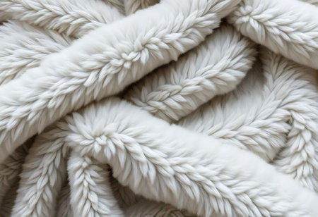 This image showcases a soft white fur texture, creating a cozy and inviting atmosphere perfect for interior design, fashion, or home decor projects.