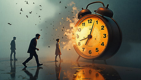 Visual interpretation of chronophobia, showing a distorted sense of time and fear of aging.