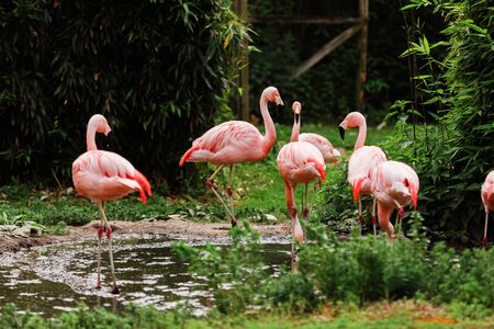 group of beautiful colored flamingos. High quality photo