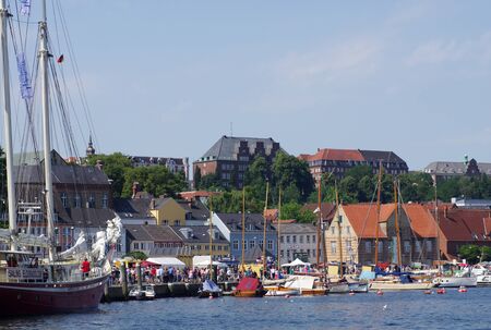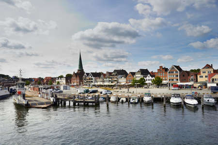 FLENSBURG, GERMANY - JULY 29, 2012: Vew of harbour in Flensburg, the independent town in the North of German state of Schleswig-Holstein. After Kiel and Lubeck it is the 3rd largest town in region