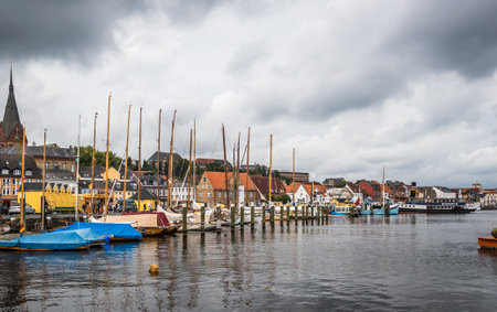 Flensburg, Germany - August 14, 2021: Harbor of the beautiful city in the north of Germany close to the danish border