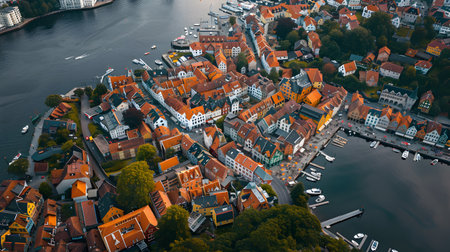 Flensburg cityscape at summer day. Skyline of the old european town. Panoramic view of the small german city