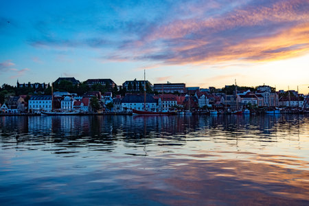 Flensburg sunset reflection in the harbor in June 2023