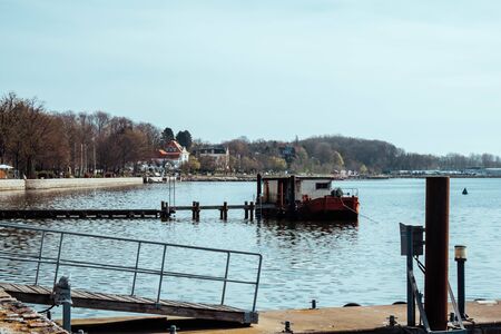 harbor and coast of the Baltic Sea in a European city, in spring