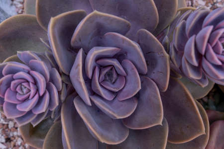 Echeveria Perle Von Nurnberg grow on a natural background in the garden. Beautiful background. Mountain gardens
