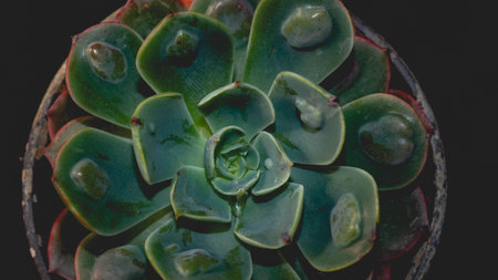 Detail of Echeveria raindrops on dark background. Beautiful succulent plant on dark background. Beaautiful natural background