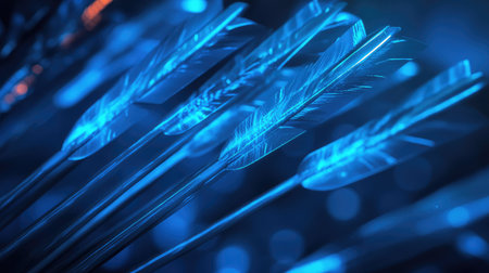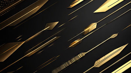 Golden arrows in motion create dynamic and striking visual effect, symbolizing speed and precision. light reflects off metallic surfaces, enhancing dramatic atmosphere