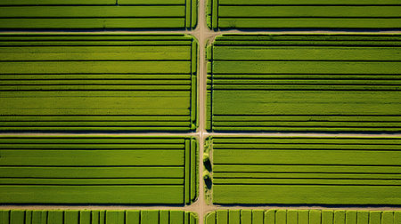 Generative AI, Farm landscape, agricultural fields, beautiful countryside, country road. Nature Illustration, photorealistic top view drone, horizontal banner.