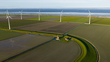 Eemshaven Windmill: Aerial Dutch Coastal View.