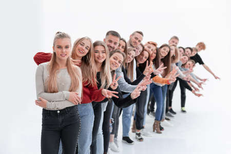 Group of people reaching up together. Hands of young and mature men and women after high five, white background, cropped shot, bottom view close up, square format. Community, team, teamwork concept