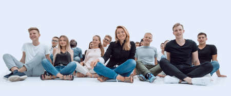 Horizontal portrait of people sit in queue have pleasant conversation with each other share ideas and life experience isolated over grey concrete wall Diverse group in ro : Generative AI
