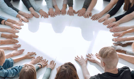 Students coming together in a circle, representing unity, teamwork, and the power of friendship