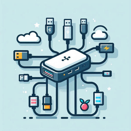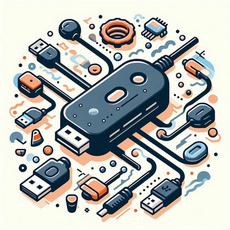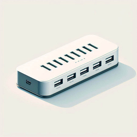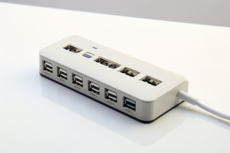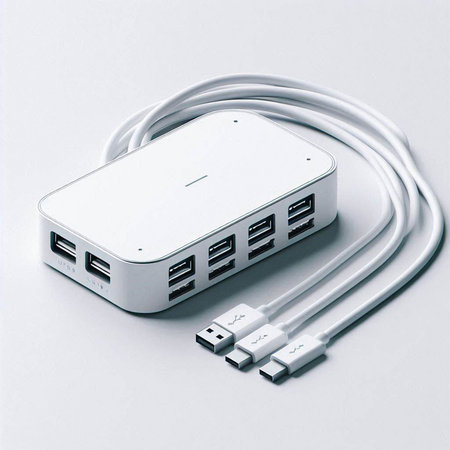 This image features a sleek, modern USB hub with multiple ports and a cable, ideal for enhancing device connectivity and efficiency in any workspace.