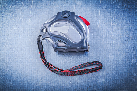 Measuring tape on scratched metallic background construction concept.
