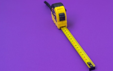 Working tool measuring tape on a white background. Yardstick. Ruler for measuring length. Worker tool. Construction and repair. Equipment. White background. Mestere artisan.