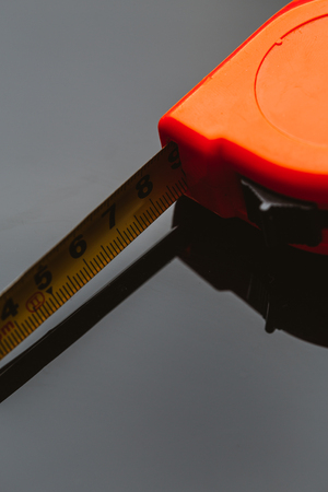 orange construction tape measure against a dark background.