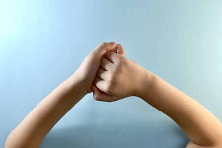 A gesture of hands a closed fist with light back ground