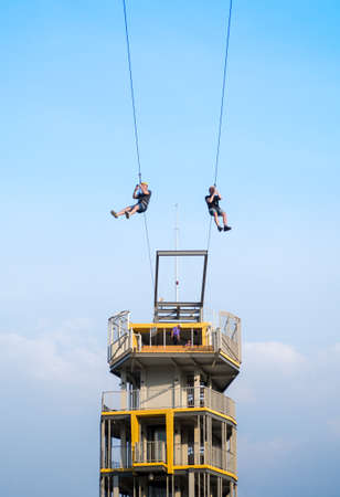 CHIANG RAI, THAILAND - MAR 11 , 2017 : Zipline Tower at Singha Park, Chiang Rai province, Thailand.