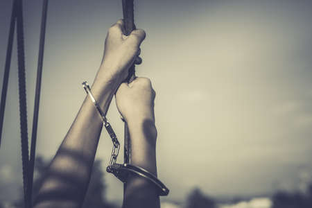 Female Hands with cage cell. trafficking Concept, focus blur.