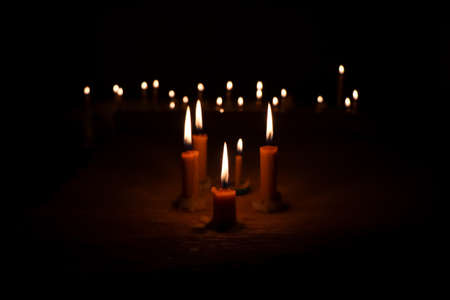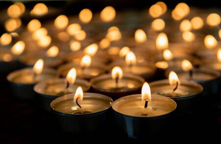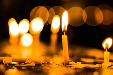 Candle lights in the darkness. Abstract candles background. Hope, fire.