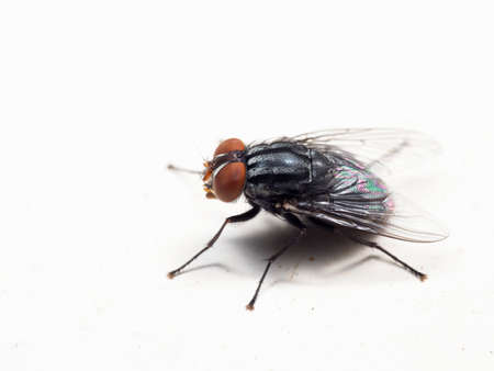Housefly close up Macro shot. The housefly is a fly of the suborder Cyclorrhapha, and has spread all over the world as a commensal of humans. It is the most common fly species found in houses