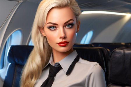 portrait of beautiful young businesswoman looking at camera in airplane cabin.ai generated