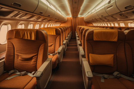 Our stock image captures modern seats on an airplane, providing a unique perspective of the interior corridor. Experience contemporary travel with comfort and style