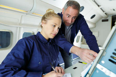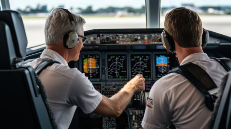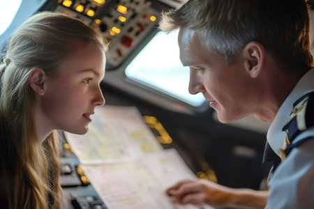 A flight instructor demonstrating aircraft controls to a student pilot, sharing years of expertise
