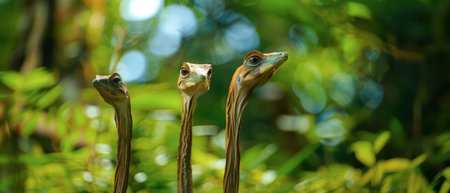 Ostrich portrait outdoor three neck and heads in a row