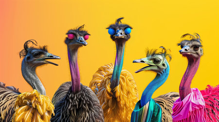 Close up shot of group ostrich against plain background