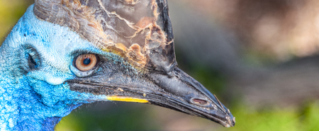 Close-up view of a female Southern cassowary - Casuarius casuarius with copy space
