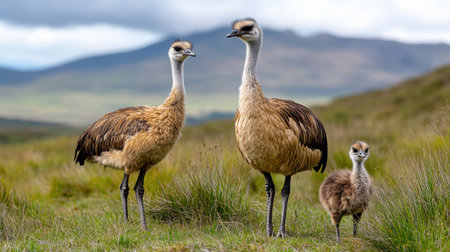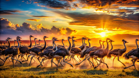 Panorama of ostrich family along the Cape of Good Hope, Cape Peninsula, South Africa