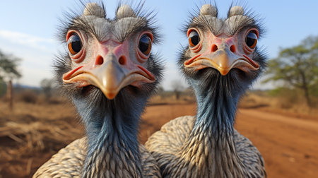 Portrait of ostrich showing personality in modern eco conscious farming.
