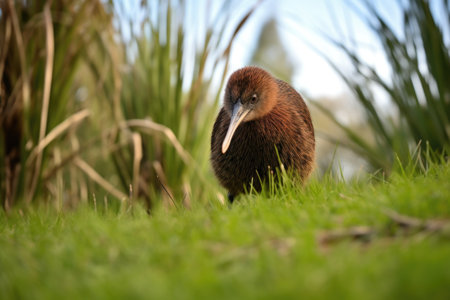 a kiwi bird in the middle of a grassy landscape, created with generative ai