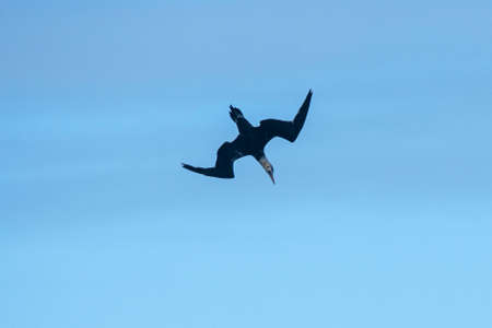 Flying young northern gannet, Morus bassanus, Tarifa, Spain