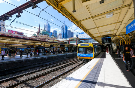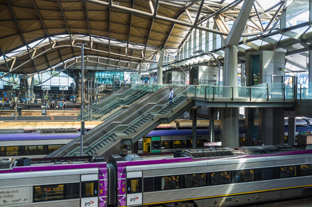 MELBOURNE, AUSTRALIA - MARCH 16, 2018 : Metro Trains Melbourne at Flinders Street Station.