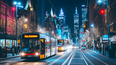 Sydney night view and tram. Shooting Location: Australia, Sydney