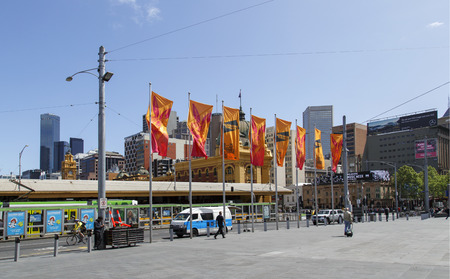 Melbourne, AUSTRALIA - MARCH 19 2015: Flinders street station the iconic landmark of Melbourne, Australia.