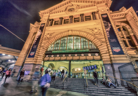 MELBOURNE - OCTOBER 2015: Flinders Street Station at night. The complex covers two whole city blocks.